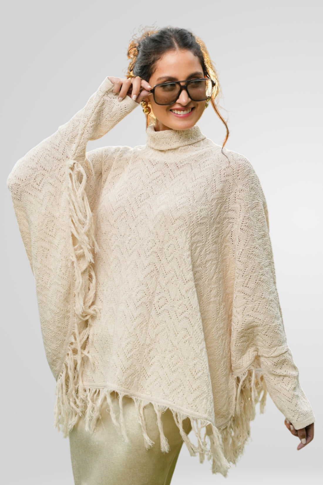 Envuelve tu estilo en comodidad y elegancia con nuestra ruana Megan. Confeccionada en un tejido de textura suave y patrón de ondas sutiles, esta pieza ofrece un look fresco y natural. Su diseño suelto de talla única proporciona un ajuste cómodo y favorecedor, mientras que los detalles de flecos a los costados y el borde inferior añaden un toque bohemio y relajado. Perfecta para complementar tus outfits de temporada, ya sea en paseos al aire libre o encuentros casuales. Combínala con tus accesorios favoritos para un estilo auténtico y sofisticado.