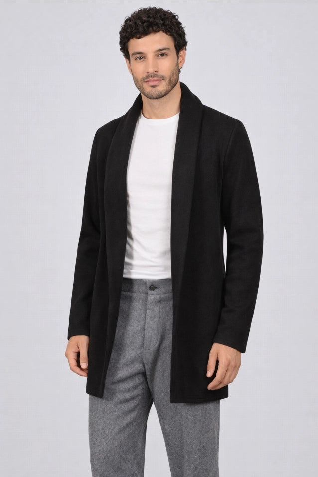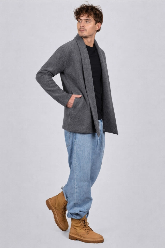 El Gabán Raba es mucho más que un abrigo; es una pieza de diseño pensada para el hombre contemporáneo que busca equilibrio entre comodidad y una presencia imponente. Su diseño abierto con solapa ancha ofrece una estructura definida que no restringe el movimiento, adaptándose con suavidad a tu figura.