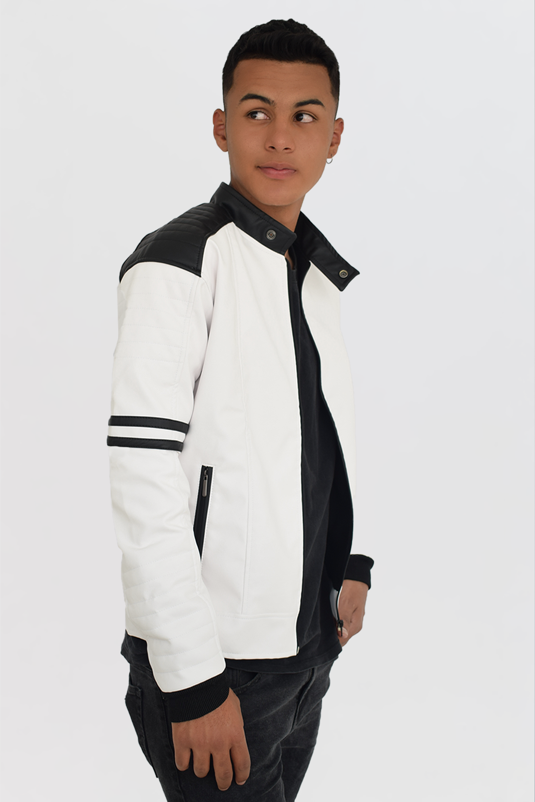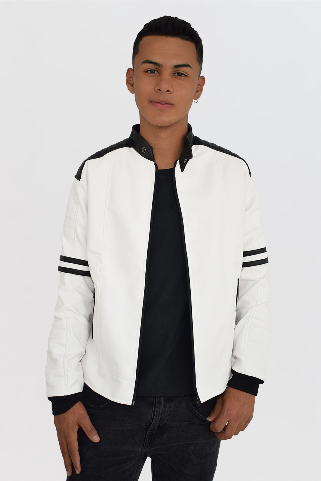 Esta no es una beisbolera cualquiera. Hemos reinventado la chaqueta beisbol hombre tradicional usando Cuerotex premium, un material que te da la apariencia del cuero en el cuerpo con la facilidad de cuidado de un tejido moderno. Ya sea que elijas la icónica chaqueta beisbolera negra con detalles en rojo o en blanco, estás eligiendo una pieza de declaración.