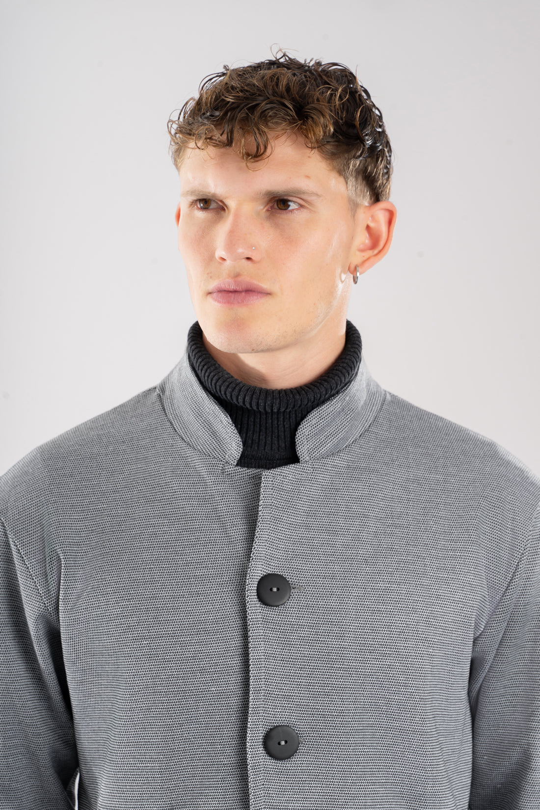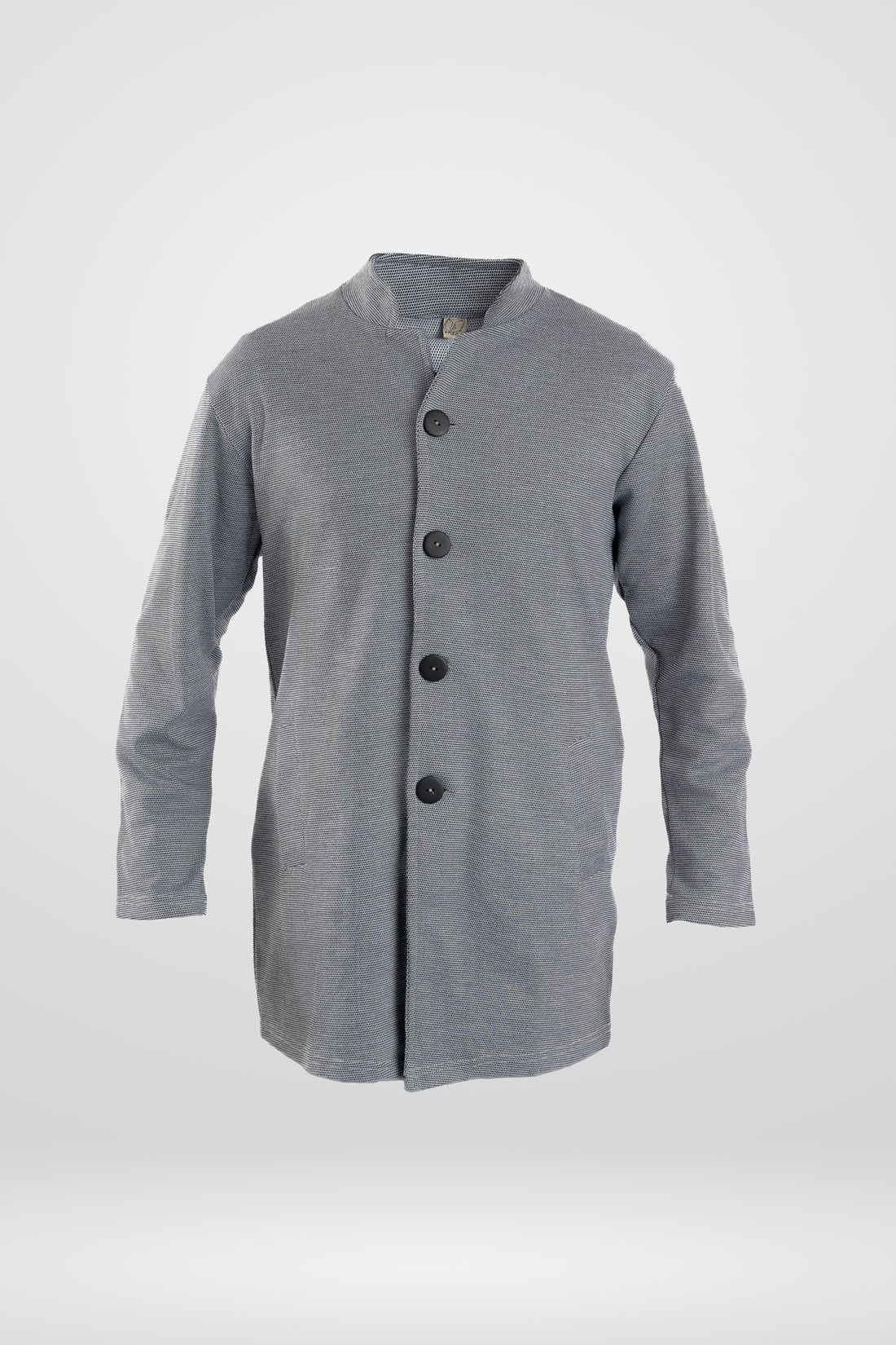 Cardigan elaborado en fibra miratex, similar al hilo. Es naturalmente resistente a manchas, bacterias o moho. |