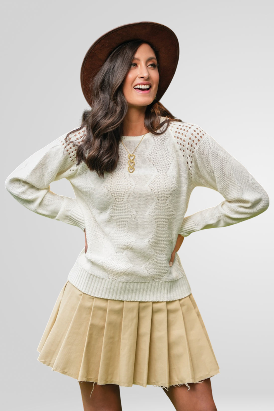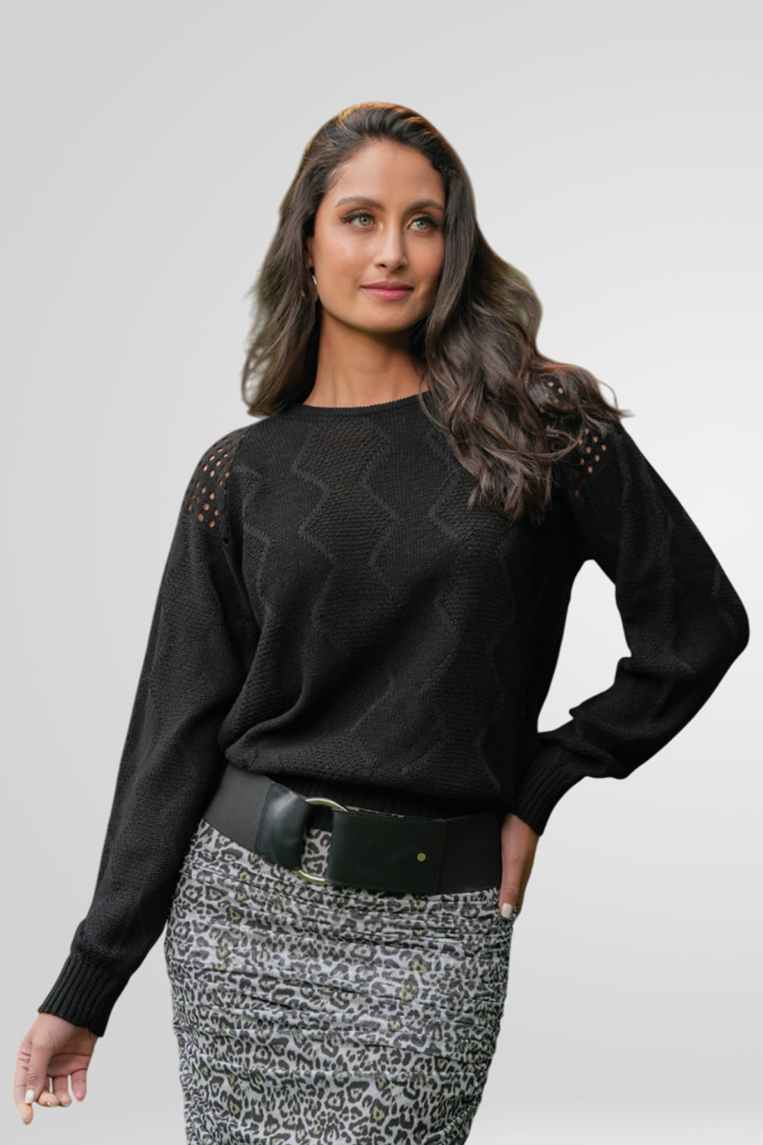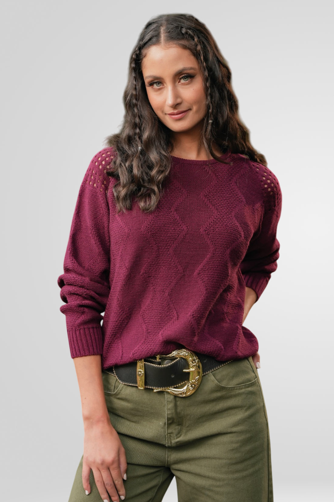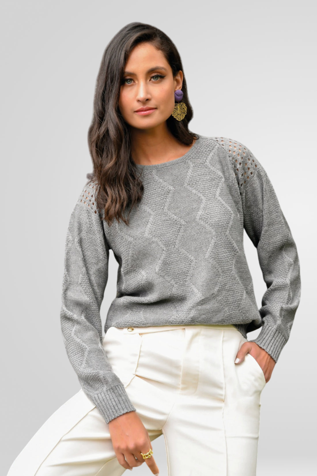 Dale un toque de sofisticación y calidez a tu look con nuestro saco Armonía. Elaborado en hilo con un delicado patrón en zigzag, ofrece un diseño moderno y versátil que combina a la perfección con estilos casuales o más elegantes. De tacto suave y ajuste cómodo, este saco de manga larga y cuello redondo es ideal para acompañarte en cualquier temporada. Disponible en talla única.